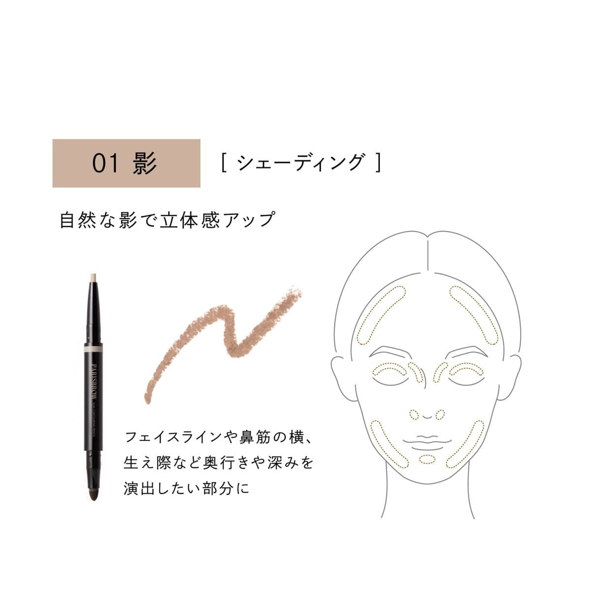 01 影 フェイスラインや⿐筋の横、⽣え際など 奥⾏きや深みを演出したい部分に